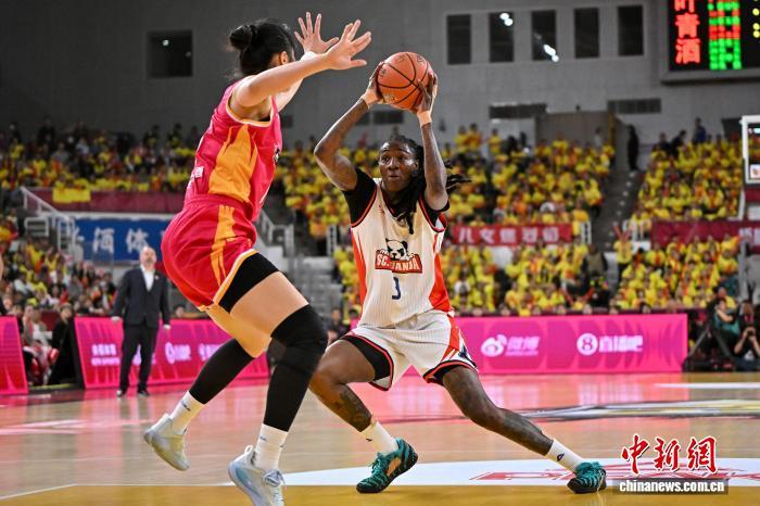 4月19日,四川队球员霍华德(白衣)在比赛中持球进攻。当日,在太原举行的2025-2026赛季中国女子篮球联赛(WCBA)总决赛第3轮比赛中,山西竹叶青酒队主场以53比75不敌四川蜀道远达队,总比分1比2落后。中新社记者 韦亮 摄